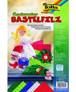 Děrovaný filc s výseky stromečků a hvězdiček je vhodný pro další tvoření. Velikost filcu je 20x30 cm. Balení obsahuje 5 ks filcu zelený, světle zelený, modrý, bílý a červený.