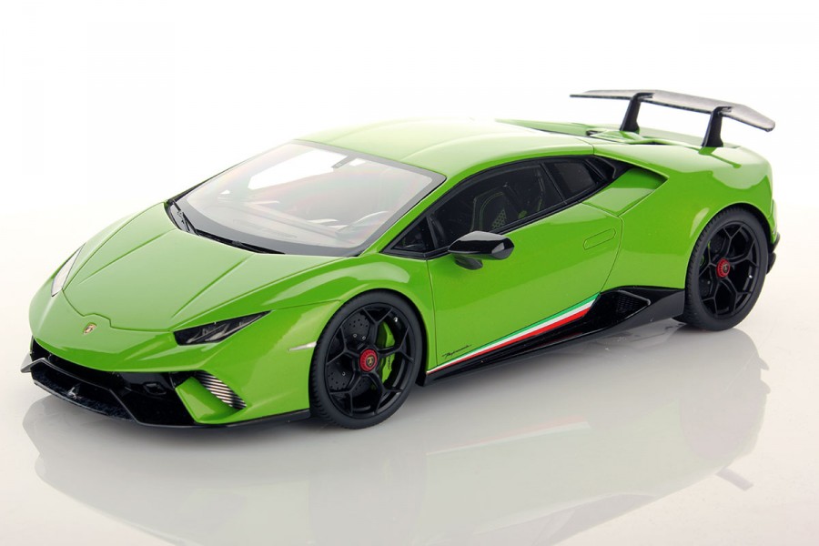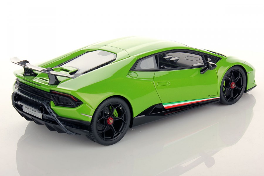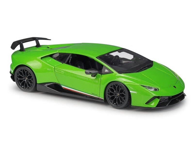 Kovový model auta Lamborghini Huracán Performante v měřítku 1:18 značky Maisto. Model má detailní zpracování karoserie včetně interiéru automobilu.
