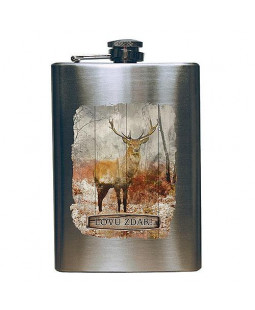 Nerezová placatka na alkohol se šroubovacím uzávěrem vám pomůže vyléčit neduhy nebo zahnat zimu. Placatice má potisk s motivem pro myslivce a milovníky přírody - Lovu zdar a brázek jelena.
