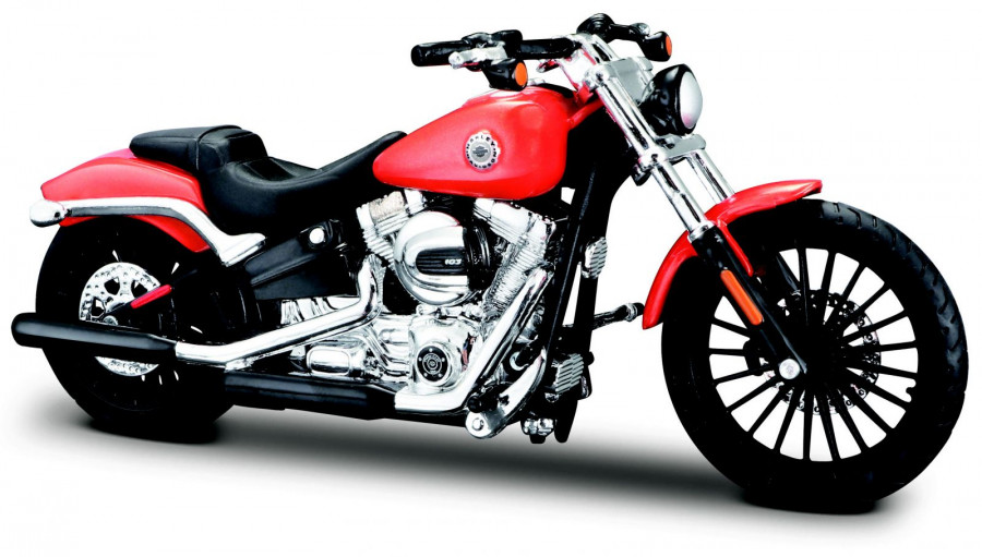 Kovový model motorky Harley Davidson Breakout (2016) značky Maisto v měřítku 1 : 18. Motorka má délku cca. 13 cm, šířku ( včetně řídítek ) cca. 5 cm.