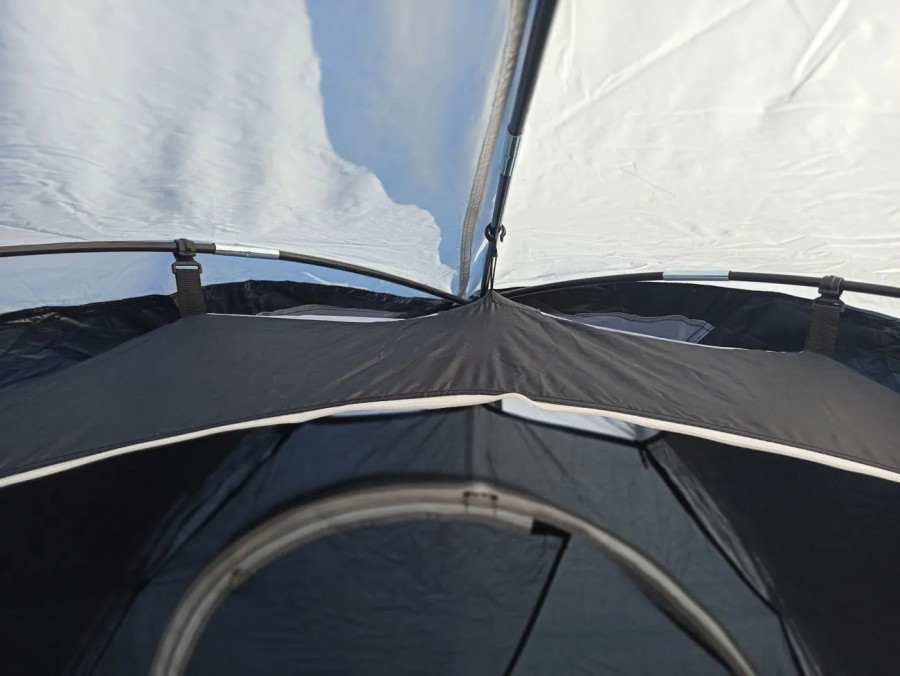 Brother stan pro 3 osoby ST06 je dvouplášťová kopule s předním a zadním vchodem (zavěšená ložnice a oddělený vrchní plášť) (90+185+90cm) x 220 x 120 cm, předsíňka před oběma vchody se zipem na uzavření, zpevněné švy, 3000 mm vod. sloupec, 210D PU OXFORD podlážka, hmotnost 3,78 kg. Stan má závěsnou ložnici a vrchní plášť přetažený přes sklolaminátové nosné pruty.
