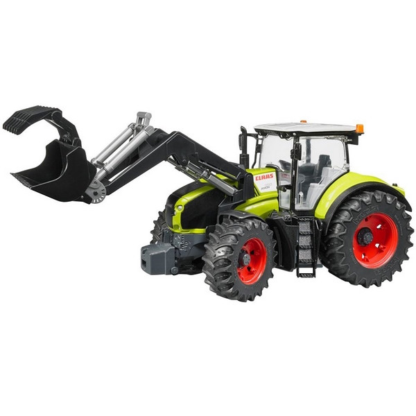 Traktor Claas Axion 950 s čelním nakladačem je velmi hezky propracovaná a mechanicky plně funkční hračka Bruder. Traktor má otevíratenou kapotu motoru a jeho součástí je prodloužený volant kterým se snadno ovládá přes otvor ve střeše kabiny.