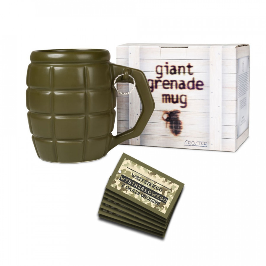 Originální hrnek ve tvaru granátu je vlemi podobný opravdovému granátu. Keramický hrnek ve tvaru granátu má stejnou texturu povrchu, výstražný symbol a číslo šarže vytištěného na straněTento hrnek lze použít jako originální dárek pro vojáky.Odstraňte pojistku před použitím v mikrovlnné troubě