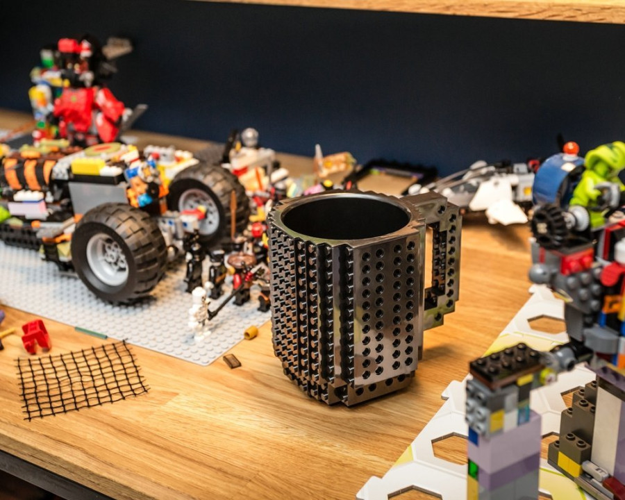 Stavebnicový hrnek je originální plastový hrnek, který se bude líbit všem co mají rádi stavebnice Lego, Cobi, BanBao a spousty dalších, které používají stejně velké kostečky a díly, které se dají zacvaknout na tělo hrnku.