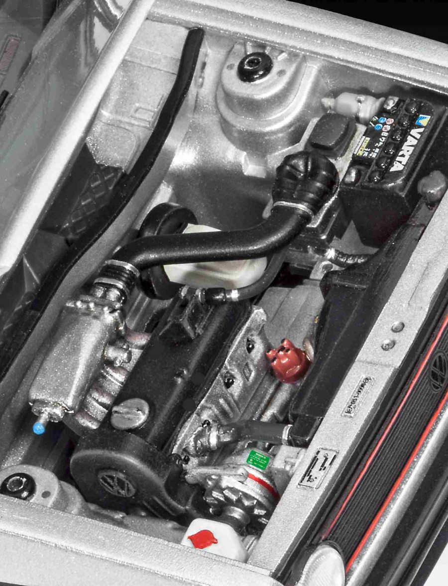 Revell ModelSet auto 67072 VW Golf GTI je plastová stavebnice atraktivního sportovního vozu. Model je měřítku 1:24, stavebnice obsahuje 121 dílků ke slepení a po sestavení má délku 15,5 cm. Součásti balení je lepidli, štětec a čtyři barvičky.