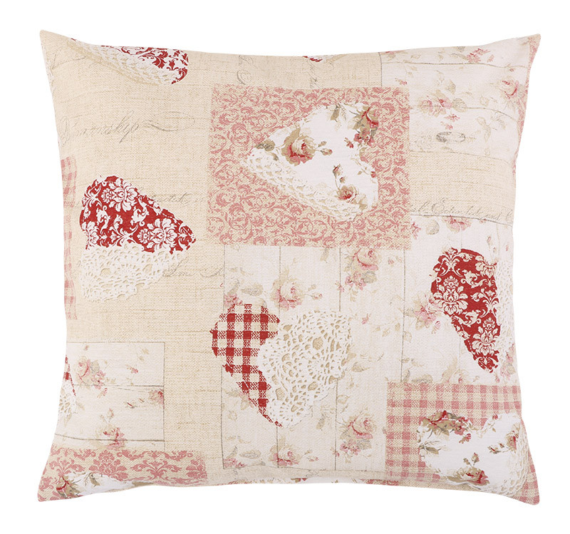 Dekorativní polštář z kolekce EMA, dezén Patchwork srdce růžové, se stane nedílnou součástí vašeho domova. Polštářek má snímatelný povrch na zip, uvnitř výplňkový polštářek. Materiál je vhodný na závěsy, ubrusy...
