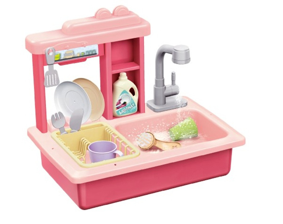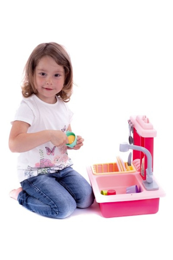Máte doma malou kuchařku? Nabízíme vám dětský funkční dřez pro všechny holčičky. Stačí jen naplnit dřez vodou a hned bude všechny bavit mytí nádobí. Dřez s funkčním kohoutkem, nádržkou na vodu, odnímatelným odkapávačem a doplňky, které musí být v každé kuchyňce. Vyrobeno z kvalitního plastu. Baterie 2x AA nejsou součástí balení. Rozměry balení 46 x 28 x 12 cm. Vhodné pro děti od 3 let.