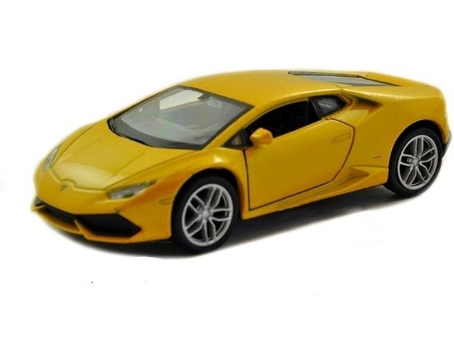 Kovový model auta Lamborghini Huracan LP 610-4 v žluté barvě a měřítku 1:34 značky Welly.