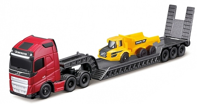 Maisto Volvo Big Hauler Set obsahuje Volvo FH 16 Cab with Volvo A25G Articulated Hauler with Dump Bed.