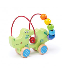Labyrint na dřevěném podkladu pomáhá dětem nejen seznamovat se s barvami, ale především trénovat jemnou motoriku při posouvání korálků. Rozměr hračky je 15x10 cm.