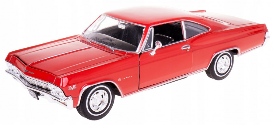 Kovový model auta Chevrolet 1965 Impala SS 396 v měřítku 1:24 značky Welly. Model má kovové osy kol a detailní zpracování karoserie včetně interiéru automobilu. Na modelu se otvírají přední dveře a kapotu motoru.Při použití síly je nebezpečí ulomení jednotlivých dílů. Doporučený věk 8 let.