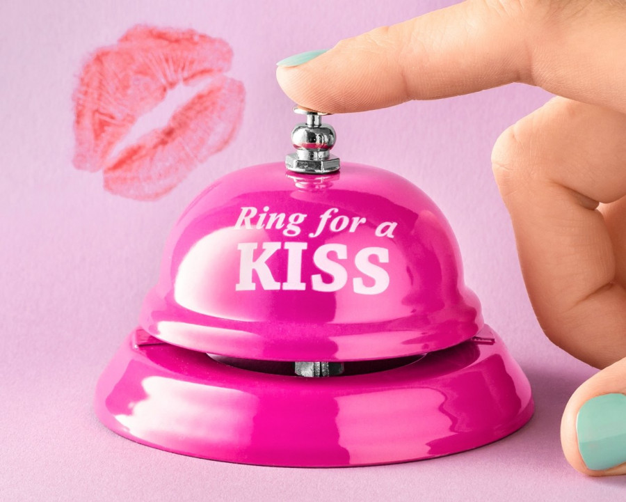 Stolní zvoneček Ring for a KISS Vás bude scela jistě bavit. Jeho použivání je velmi jednoduché. Zvoneček je vyrobený z kovu a jeho velikost je 8 x 5,5 cm.