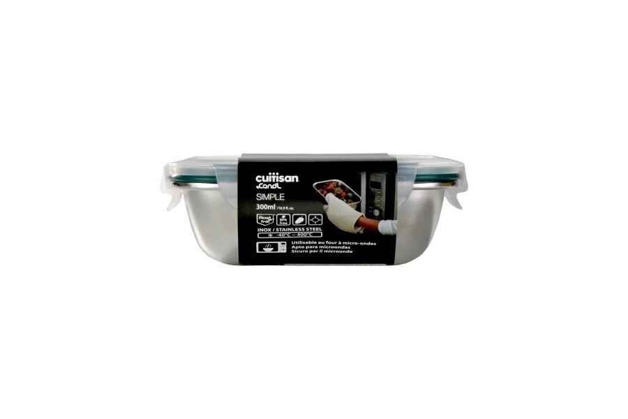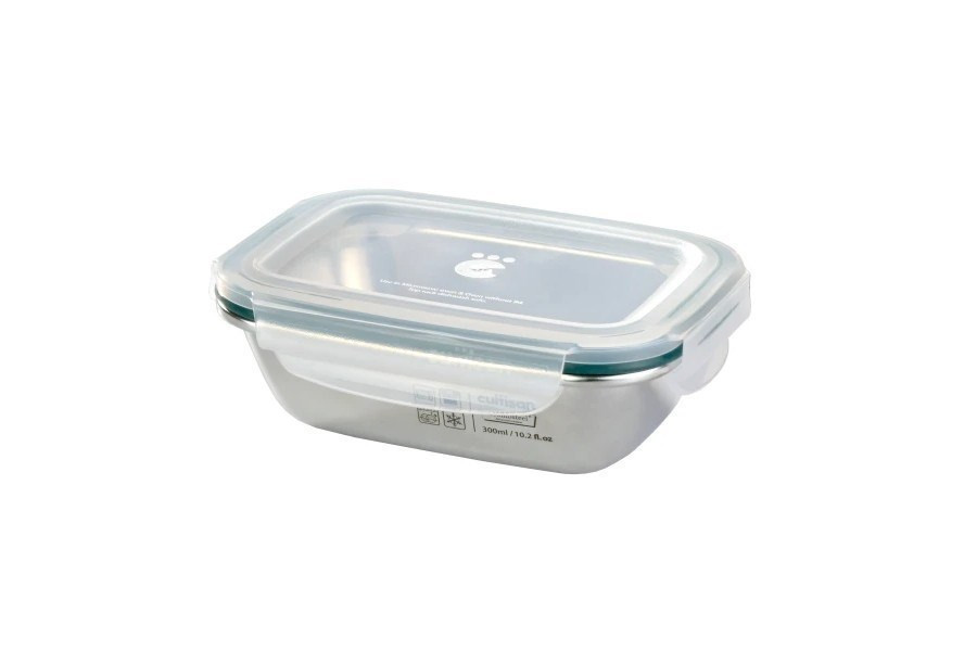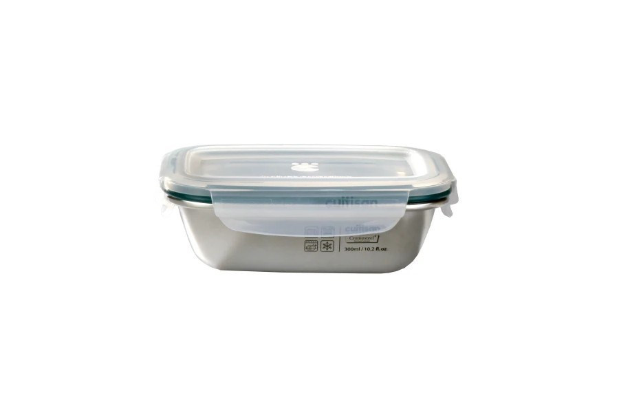 Lehká, nezávadná, vzduchotěsná obdelníková dóza Cuitisan na potraviny o objemu 300 ml., která může být pomocníkem ve vaší kuchyni na skladování nebo zamrazování potravin.