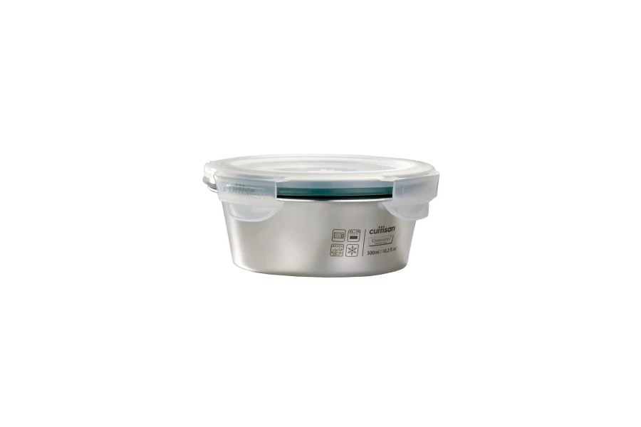 Lehká, nezávadná, vzduchotěsná kulatá dóza Cuitisan na potraviny o objemu 300 ml., která může být pomocníkem ve vaší kuchyni na skladování nebo zamrazování potravin.