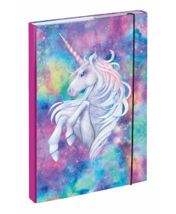 Ochranné desky na úschovu sešitů či jiných dokumentů, včetně vnitřní klopy proti vypadnutí, zajištěné gumičkou.