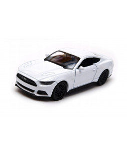 Kovový model auta Ford 2015 Mustang GT v bílé barvě a měřítku 1:34/39 značky Welly. Model autíčka má kovové osy kol a detailní zpracování karoserie včetně interiéru automobilu. Na modelu se otvírají dveře.