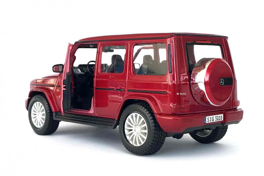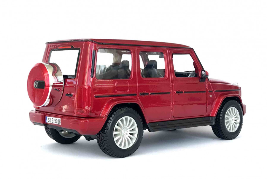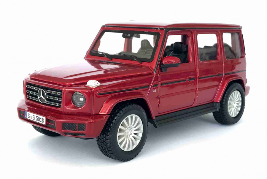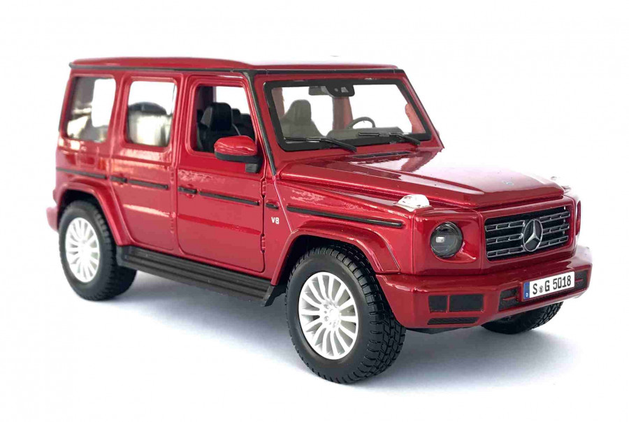 Kovový model auta Mercedes Benz G Class AMG SUV 2019 červené barvy v měřítku 1:24 značky Maisto. Autíčko má otviratelné předné dveře a má detailní zpracování karoserie a interiéru. Délka modelu je cca. 20 cm.