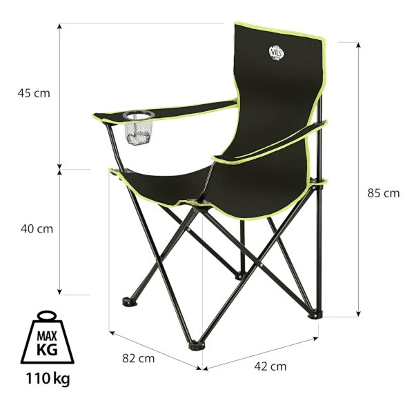 Skládací, kempingová židle NILS Camp NC3044 je ideální k vodě, na ryby, na festival, nebo například na dovolenou pod stan. Stabilní konstrukce je vyrobena z ocelových trubek o průměru 15 milimetrů, které jsou k sobě spojeny pomocí kvalitních nýtů.