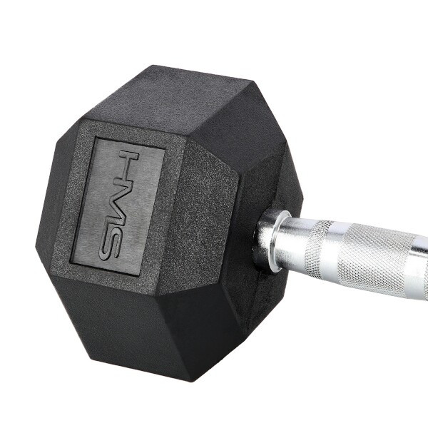 18ti kilogramová jednoruční, šestihranná činka určená pro profesionální použití jak doma tak v posilovně. Šestihranný tvar zamezuje nechtěnému pohybu činky při jejím odložení a pogumování prodlužuje její životnost. Chromovaný úchop je opatřen rádlováním pro jistější držení..