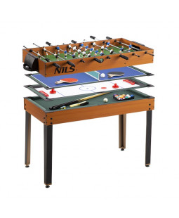 Multifunkční herní stůl NILS SDM 4v1, který obsahuje nejoblíbenější hry jako je - fotbálek, billiard, air hokej a stolní tenis. To vše na jednom místě s jednoduchou výměnou herní desky. Tento model je vyroben z kvalitního MDF, odolného vůči jakémukoliv poškození. Všechny 4 hry jsou dodávány včetně příslušenství.