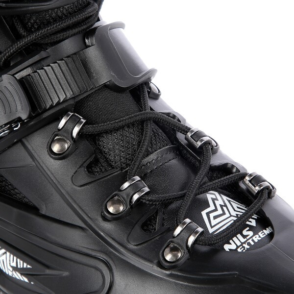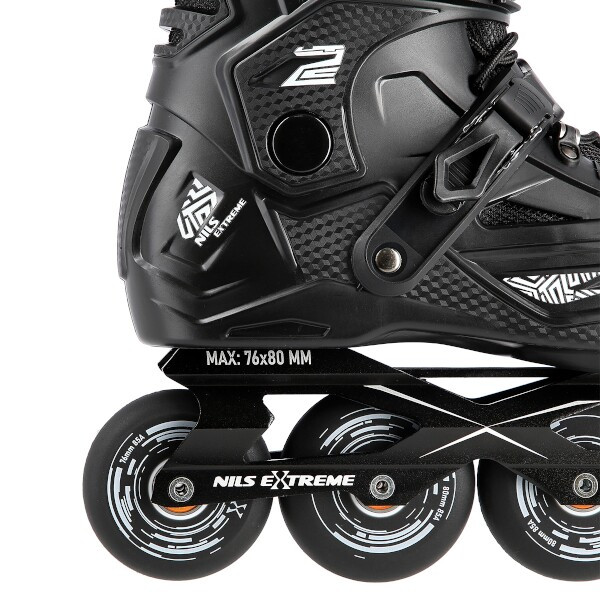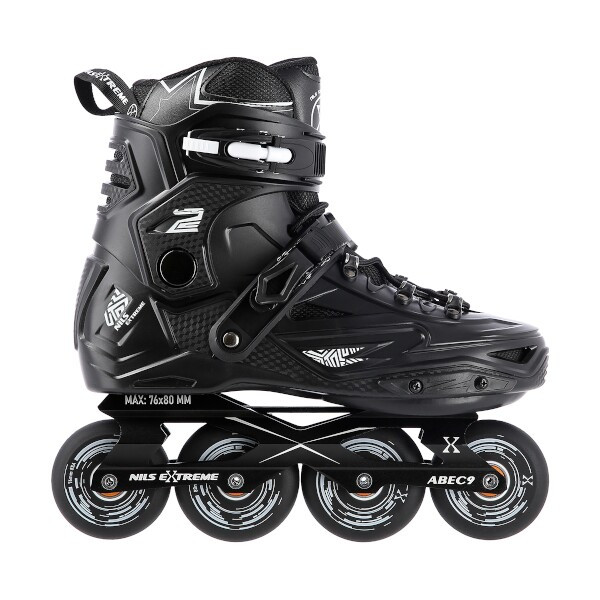 Kolečkové brusle NILS Extreme NA9786 jsou určeny primárně pro freeride a slalom. Jejich konstrukce je založena na lehké, větrané botě s anatomickou stélkou zaručující vysokou stabilitu paty, polypropylenovém skeletu a hliníkové liště vyrobené pomocí precizní CNC technologie. Jako zapínání bylo použito šněrování, dvojsekční přezky a kvalitní spony s napínacím mechanismem. Na vnější straně boty nalezneme slider, tak často užívaný při freeridu. Takzvané "slalomové uložení" koleček, kdy prostřední dvě kolečka jsou větší než kolečko první a poslední, snižuje poloměr otáčení brusle a umožňuje tak maximální kontrolu nad řízením směru brusle. Polyuretanová kolečka jsou osazeny ložisky ABEC 9, ty jsou díky minimalnímu valivému odporu rychlá a nemalou mírou přizpívají ke kontorle nad bruslemi. Model NA9786 je určen jak pro začínající, tak pokročilé, amatérské nadšence slalomu a freeridu.