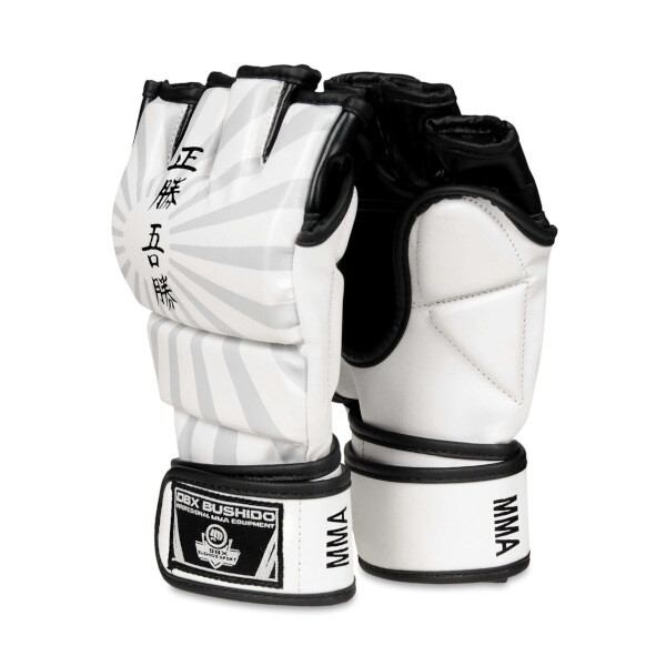MMA a tréninkové rukavice DBX BUSHIDO E1v7 jsou vyrobeny ze zpevněné, umělé kůže se zvýšenou elasticitou, vyplněny jsou pěnou. Díky otevřené vnitřní straně vám rukavice umožňují zachovat přilnavost a ruka dokonale větrá. Navíc je rukavice vybavena ochranným překryvem hřbetu palce a dlouhým, širokým popruhem pro stáhnutí zápěstí, aby se minimalizovalo případné riziko zranění. Vnitřní strana je obšita hladkým materiálem pro snadné nasazení a sundání i během náročného tréninku. Anatomický tvar rukavice ve spojení se zvýšenou elasticitou umělé kůže zajistí jejich komfortní užívání.