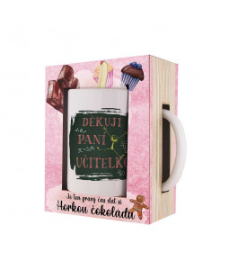 Dárkové balení keramického hrnku a horké čokolády 27 g pro maminku k přípravě oblíbeného teplého nápoje. Ideální dárek pro učitele jako poděkování za jejich nedocenitelnou práci.