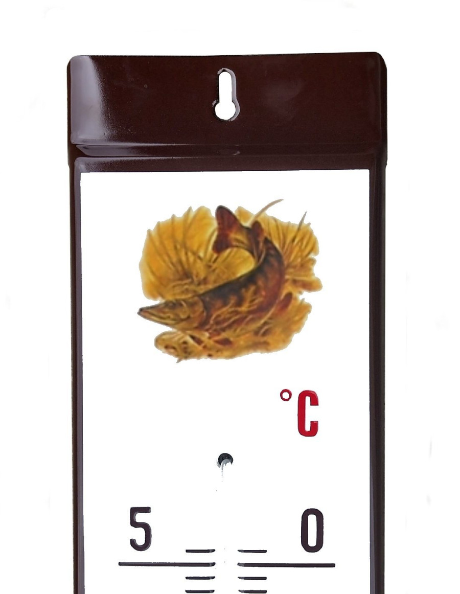 Venkovní teploměr smaltovaný, Hnědobílý 500x95 mm, Motiv štika