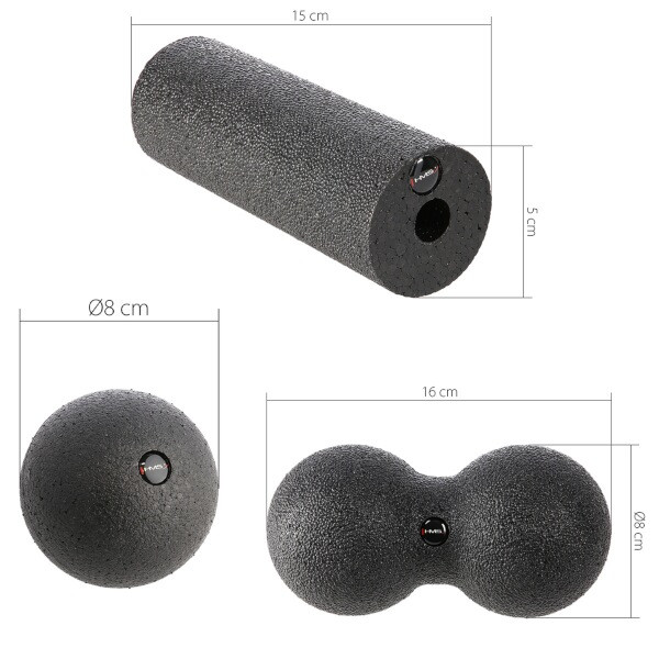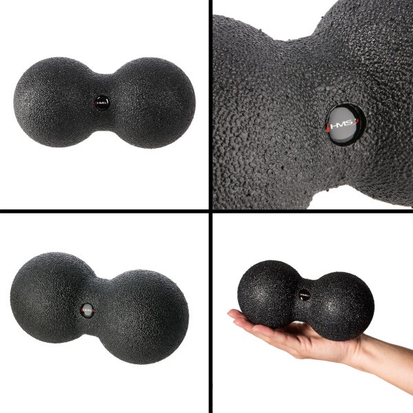 Dvojitý míč HMS je ideální pro terapii hlubokých svalových skupin nebo těžko přístupných oblastí těla, jako je krk, hýždě, ramena a hrudník. S mini válečkem si můžete uvolnit předloktí nebo chodidla.