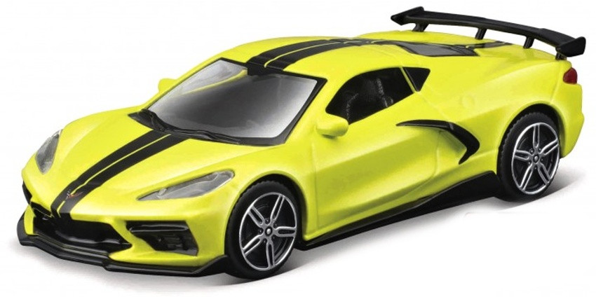 Kovový model auta Chevrolet 2020 Corvette od výrobce hraček Bburago v měřítku 1 : 43. Model autíčka má kovové osky kol.
