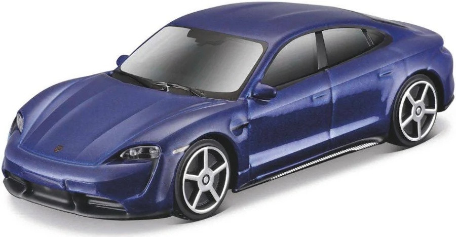 Kovový model auta Bburago Porsche Taycan 2018 modré barvy v měřítku 1 : 43.