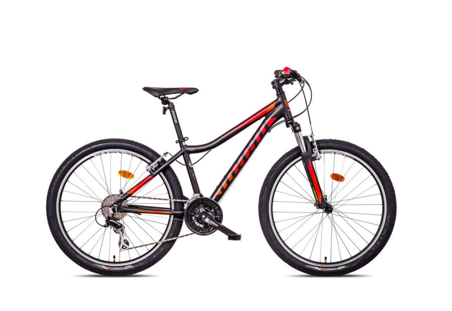 Horské jízdní kolo Mayo XC Tour V UNI má rám ze slitiny hliníku AL6061 velikosti 15" se zahnutou spodní trubkou, svařovaný technologií TIG a přední odpruženou vidlicí SUNTOUR M3010-A s nastavením předpětí.