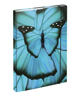 Ochranné desky na úschovu sešitů či jiných dokumentů, včetně vnitřní klopy proti vypadnutí, zajištěné gumičkou.