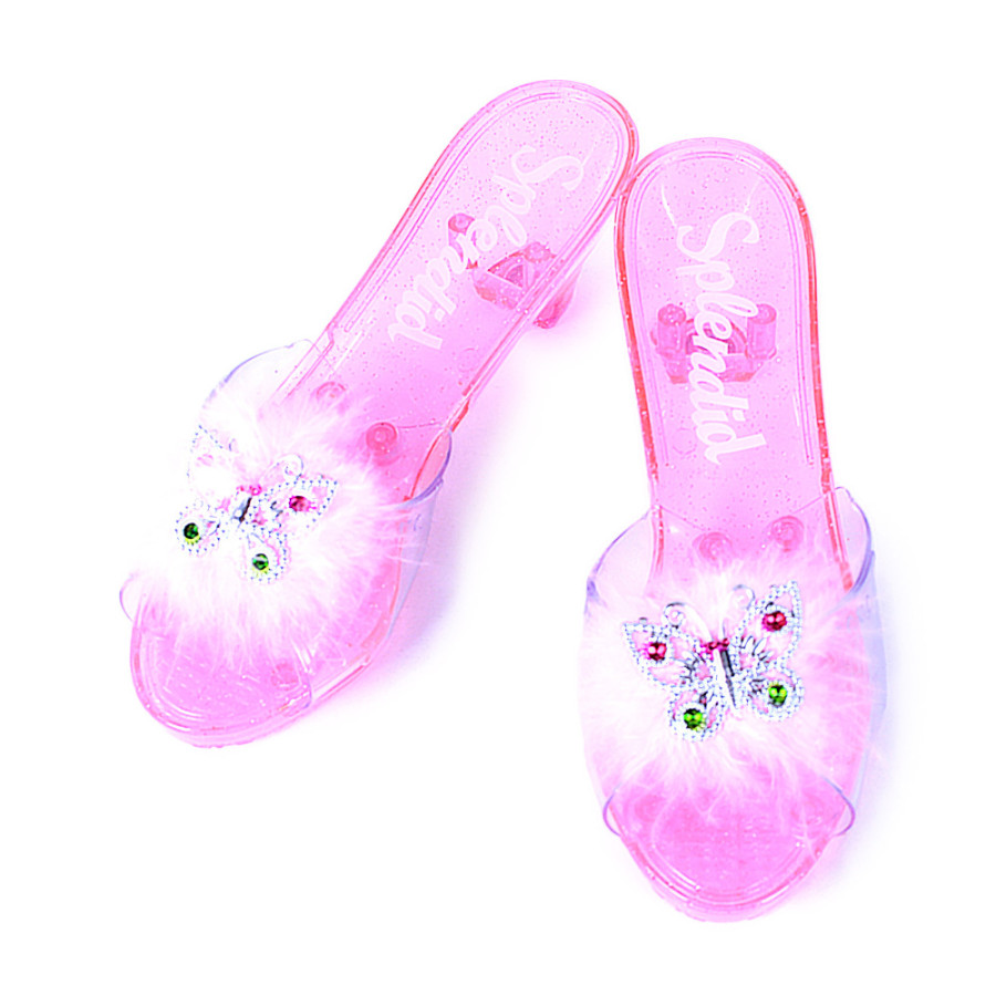 Krásné růžové střevíčky by neměly chybět žádné princezně! Střevíčky o délce 20 cm jsou vyrobeny z PVC a zdobeny peřím a úchvatným motýlkem. Navíc se celé třpytí!