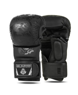 Tréninkové MMA rukavice DBX BUSHIDO "Black Dragon" jsou vyrobeny ze zpevněné, umělé kůže se zvýšenou elasticitou, vyplněny jsou pěnou. Díky otevřené vnitřní straně vám rukavice umožňují zachovat přilnavost a ruka dokonale větrá. Navíc je rukavice vybavena ochranným překryvem hřbetu palce a dlouhým, širokým popruhem pro stáhnutí zápěstí, aby se minimalizovalo případné riziko zranění. Vnitřní strana je obšita hladkým materiálem pro snadné nasazení a sundání i během náročného tréninku. Anatomický tvar rukavice ve spojení se zvýšenou elasticitou umělé kůže zajistí jejich komfortní užívání.