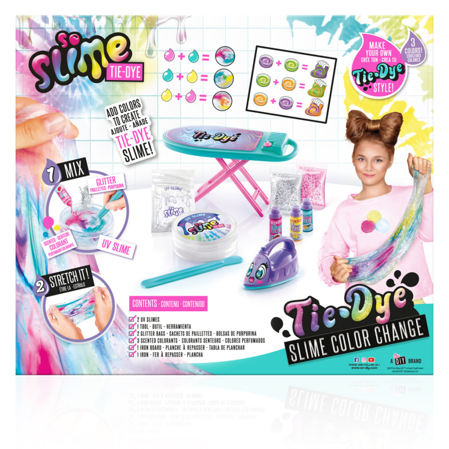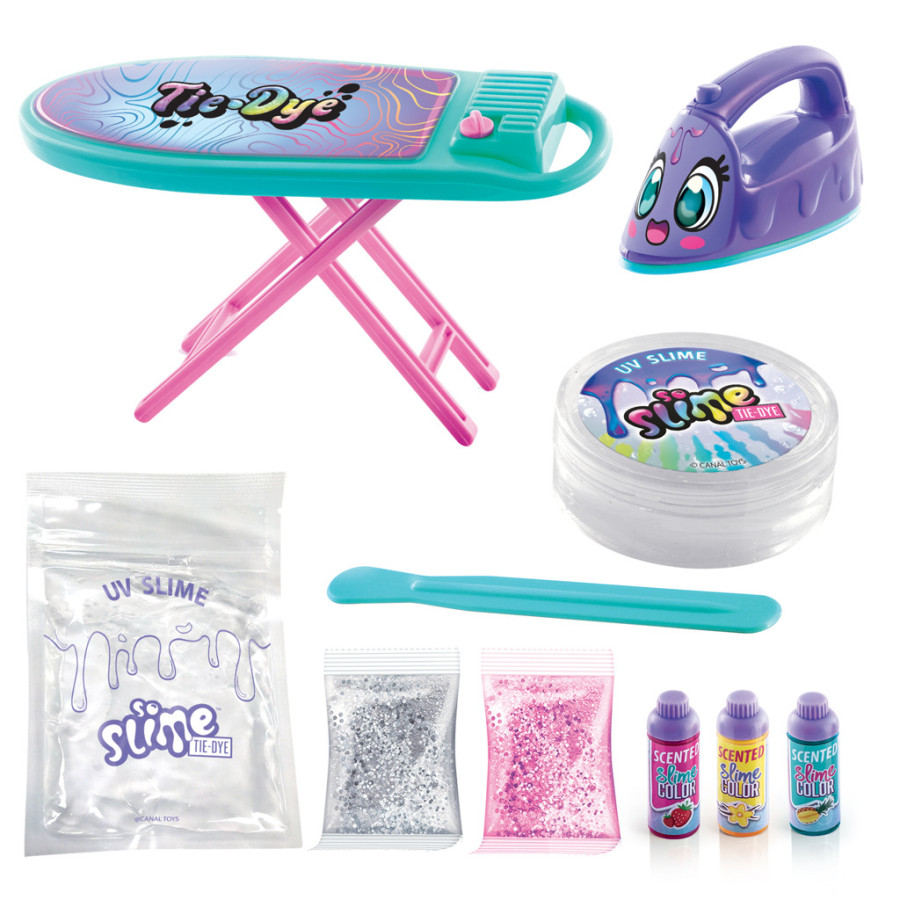 Toto je úplně nová řada slizů So Slime. Zapojte svoji fantazii a vytvořte si úžasně slizkou prádelnu. Vytvořte si jedinečný duhový sliz. Zamíchejte do bezbarvého slizu barvy, kombinujte je a můžete použít i třpytky. Použijte žehličku s UV světlem a sledujte, jak duhový sliz změní svoji barvy.