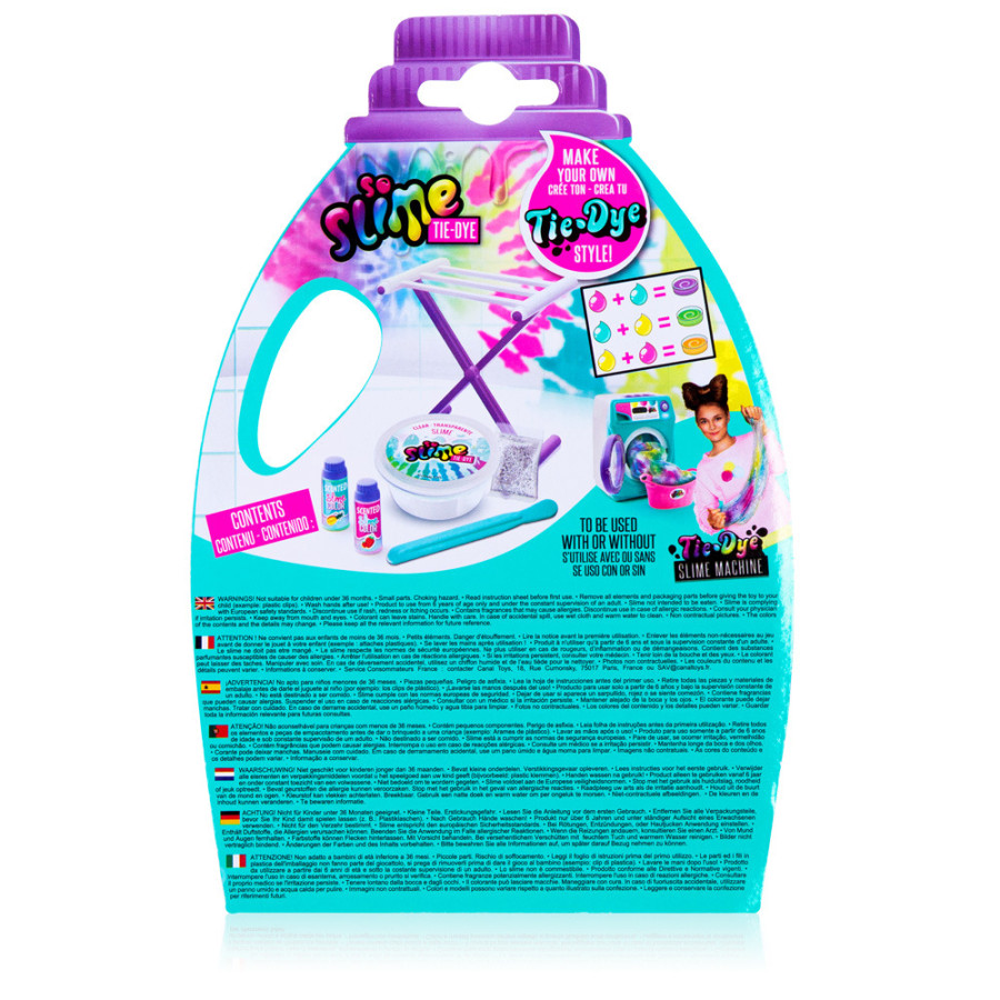 Toto je úplně nová řada slizů So Slime. Zapojte svoji fantazii a vytvořte si úžasně slizkou prádelnu. Zamíchejte do bezbarvého slizu jednu nebo dvě barvy. Můžete použít i třpytky a vytvořte jedinečný duhový sliz, který třeba můžete pověsit na sušák nebo si s ním prostě jenom tak hrát.