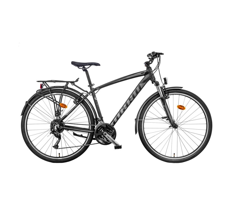 Pánské trekingové jízdní kolo Mayo XR Tour Lite Trek má hliníkový rám AL6061 o velikosti 19" a kola o průmšru 28". Kolo je osazeno přední odpruženou vidlici SUNTOUR M3010.