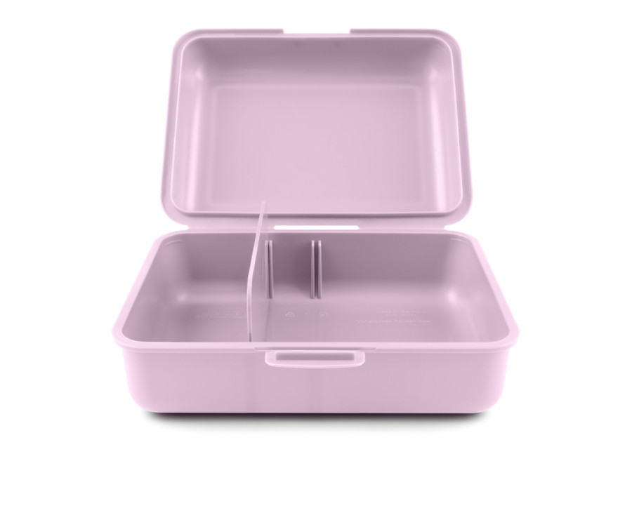Plastový box na svačinu s dělící přepážkou s uzavíráním na jeden zámek. Rozměr boxu na svačinu je 17,8x12,2x6 cm.
