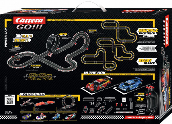 Autodráha Carrera GO!!! dlouhá 6,3m s auty BMW M4 GT3 a Audi R8 LMS GT3 obsahuje looping, křižovatku, rovinky, zatáčky, kolmou stěnu, díl s počítadlem kol a další díly. Můžete si sestavit další různé trati podle své fantazie.Délka trati: 6,3 mRozměry po sestavení: 175 x 122 cmObsah balení: