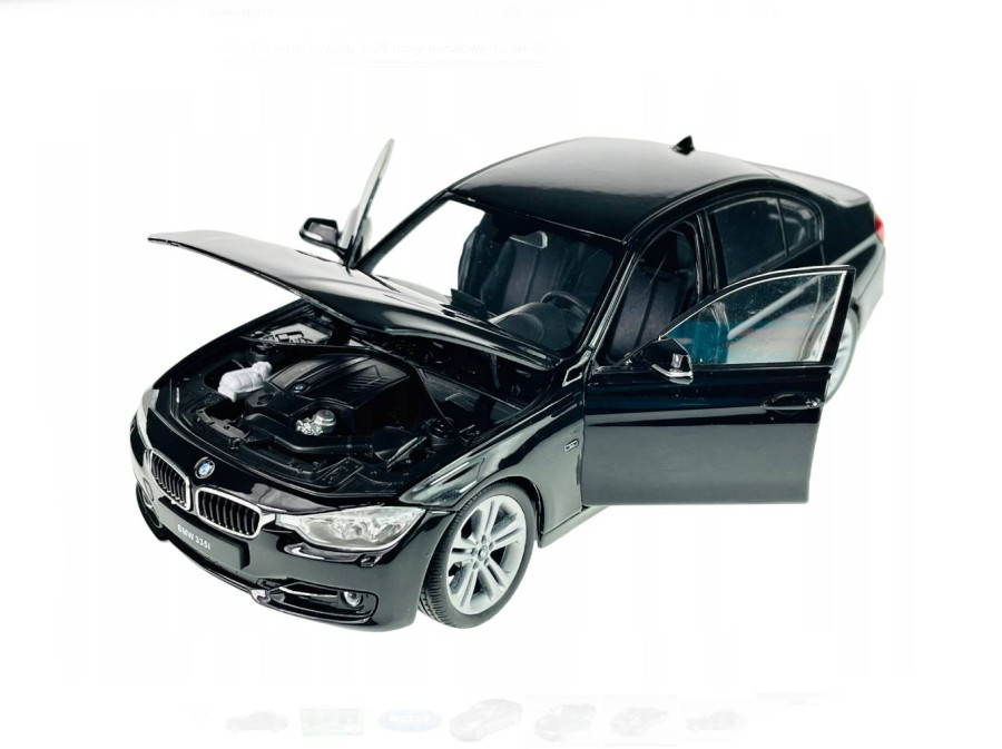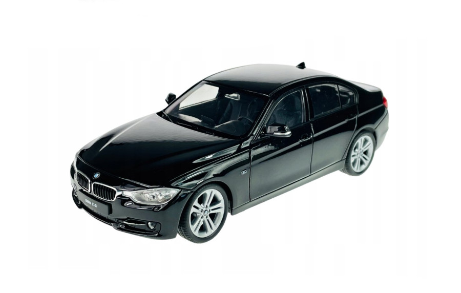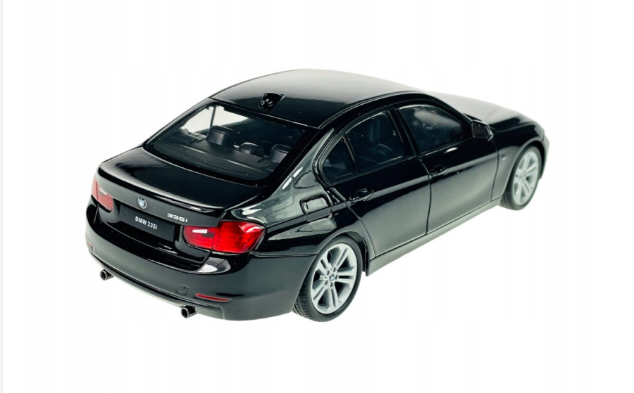 Kovový model auta BMW 335i v měřítku 1:24 značky Welly. Model má detailní zpracování karoserie včetně interiéru automobilu. Na modelu se otvírají přední dveře a kapota motoru.