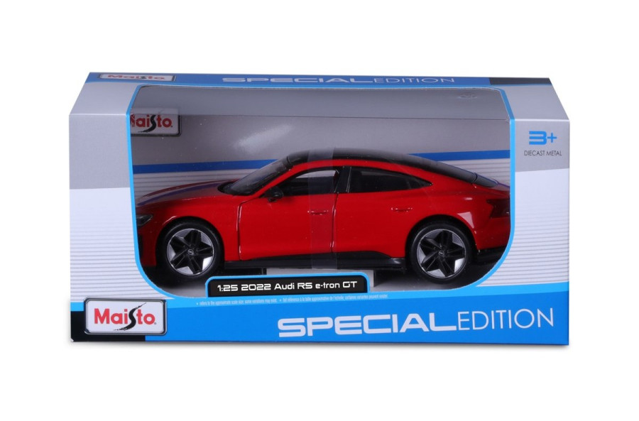 Special Edition 2022 Audi RS e-tron GT v červené barvě. Modely Special Edition jsou sbírkou krásného designu s vysokým důrazem na přesnost detailů. Modely jsou vyrobeny z litého kovu s plastovými detaily.