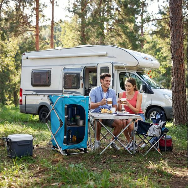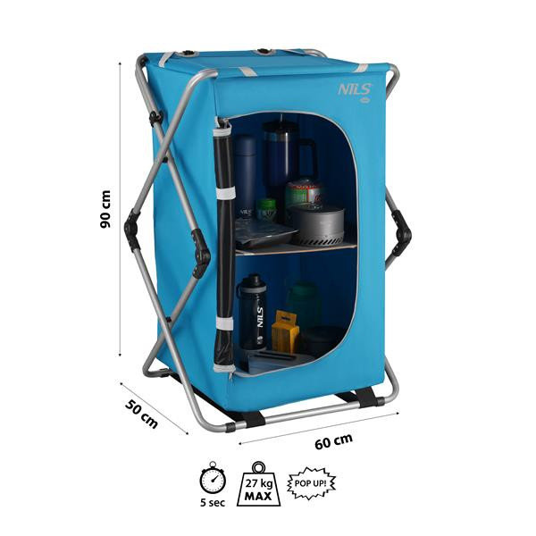 NC3702 skvěle doplní vybavení stanu nebo karavanu. Může sloužit jako turistická komoda, regál na potraviny nebo odkládací stolek. Díky rychlému systému rozložení a kompaktnímu tvaru se snadno vejde do kufru auta nebo cestovní tašky.