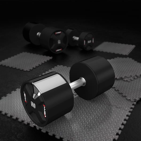 Jednoruční činky HMS HPC jsou vyrobeny z ocelového jádra potaženého litým polyuretanem (CPU). HPC jsou vybavením vytvořeným s ohledem na nejnáročnější uživatele. Výjimečná odolnost, estetické provedení a pokročilé vlastnosti z nich činí ideální volbu pro ty, kteří očekávají spolehlivost během intenzivních tréninků.