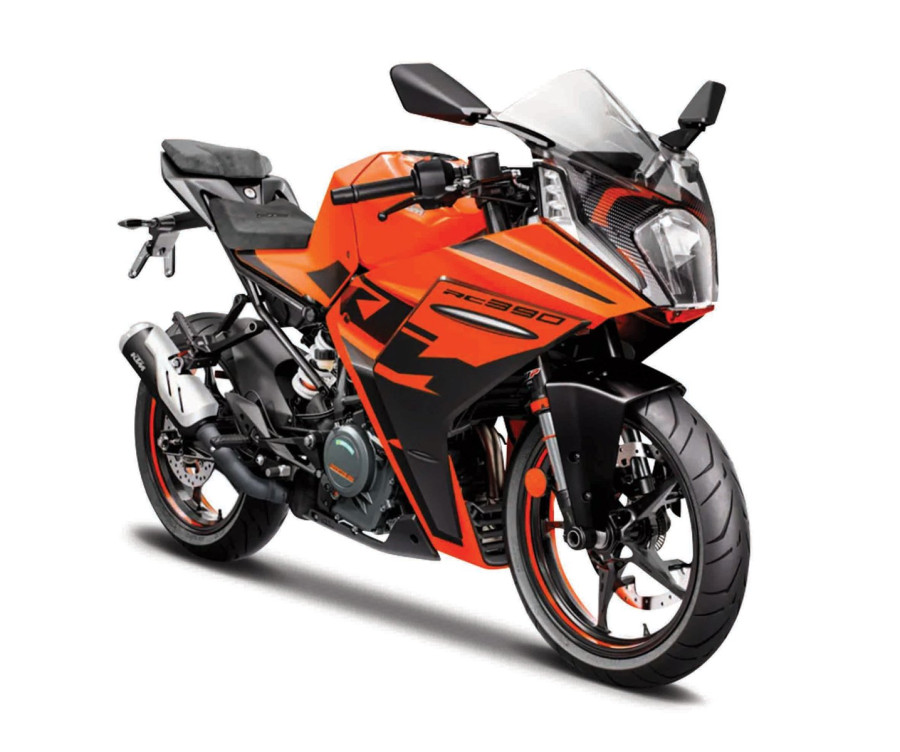 Model motorky KTM RC 390 má odpruženou zadní vidlici.