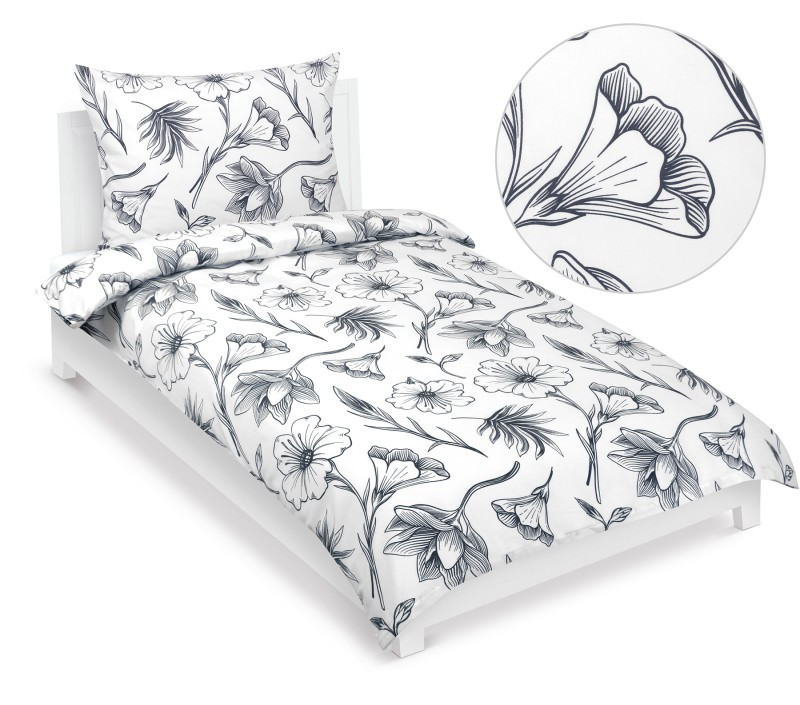 Bellatex Povlečení flanelové, Ibišek šedý - 140x220, 70x90 cm
