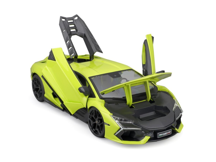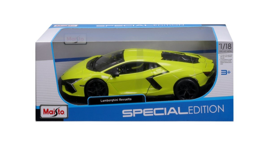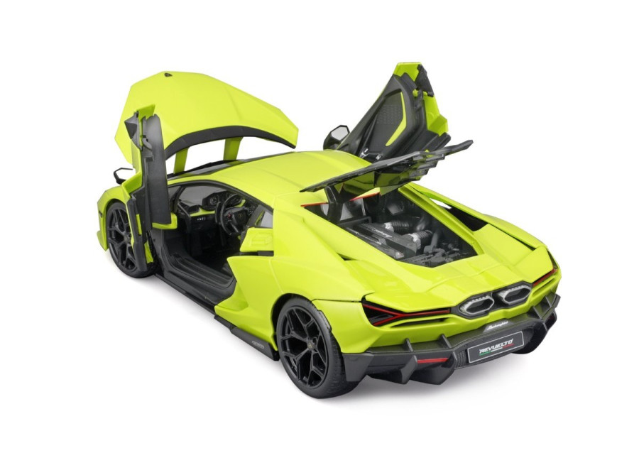 Společnost Maisto reprodukovala Lamborghini Revuelto věrně podle originálu a s velkým důrazem na detail jako kovový model odlévaný pod tlakem v měřítku 1:18 s detailním interiérem a pohyblivou kapotou, zavazadlovým prostorem a dveřmi.