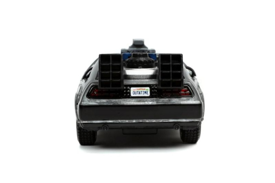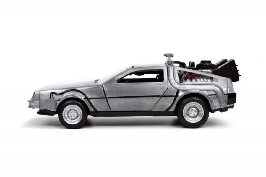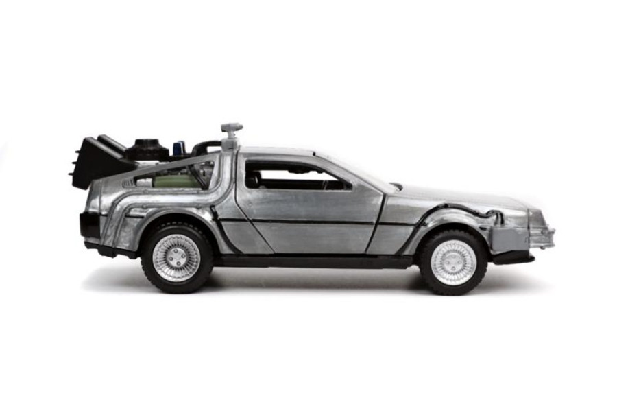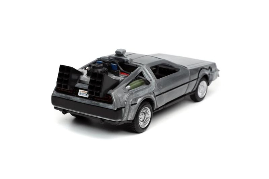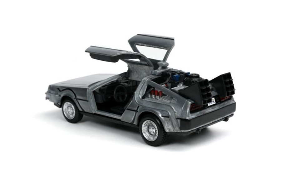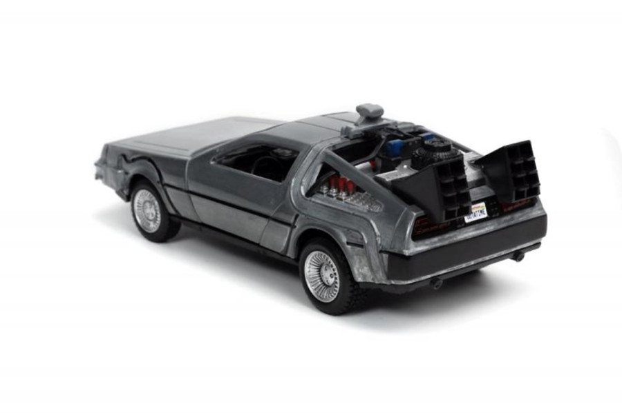 Kovový model Time Machine Back to the Future 1 na volnoběh v měřítku 1:32 s otevíracími dveřmi.