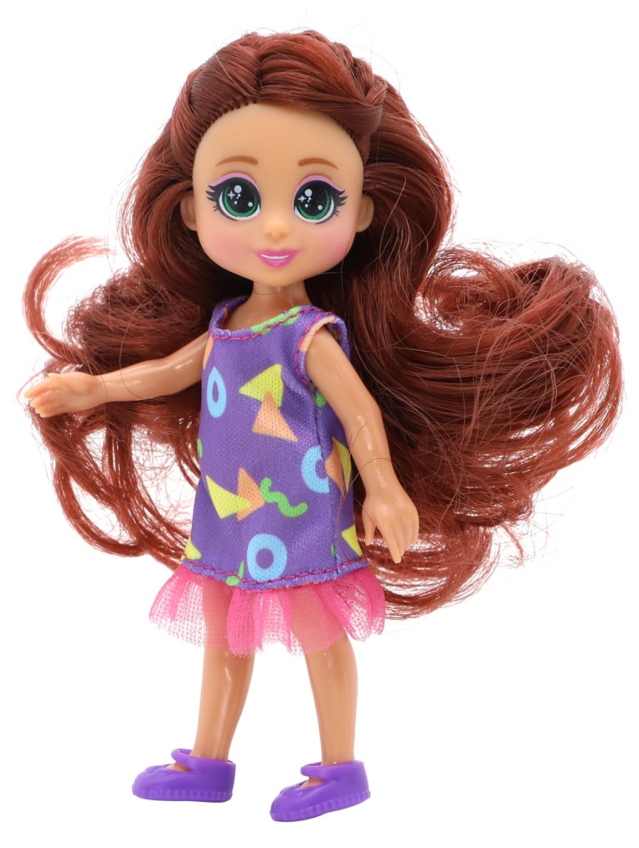 Dreameez mini panenka v kornoutku, brunetka s fialovými šaty
