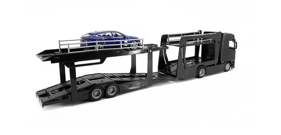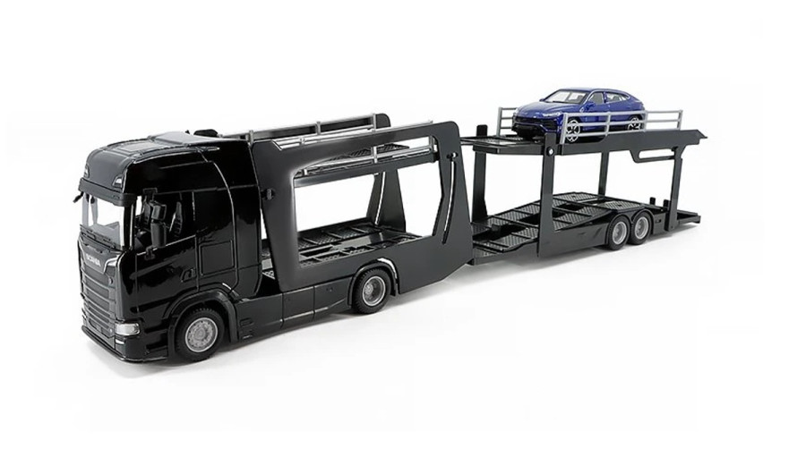 Model kamionu Multicar Carrier Scania 770S autotransport model autíčka Lamborghini Urus značky Bburago. Nákladní auto s návěsem má na délku včetně vleku cca. 45 cm , výšku cca. 10 cm a šiřka cca. 6 cm ( bez zrcátek). Kamion má odpojitelný vlek, pohyblivé nájezdy k nakládání osobních automobilů na návěs. Celkově lze na kamion naložit 7 osobních autíček v měřítku 1:43.